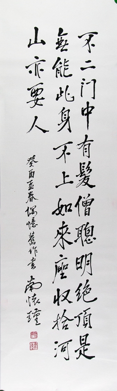 南師的青年時(shí)代,日本侵略者的鐵蹄正踐踏中國(guó)。國(guó)破山河碎,神州大地已難以安放一張讀書的課桌!捌咂呤伦儭焙,南師毅然入川,考入中央陸軍軍官學(xué)校,并任教官。然而,仿佛天注定的文化使命在召喚,26歲那年,南師辭去教官職務(wù),入峨眉山大坪寺閉關(guān)讀大藏經(jīng)。在當(dāng)時(shí),讀大藏經(jīng)是可遇而不可求的,要讀此經(jīng)還必須出家。南師一生立愿,一不做官、二不出家。但是為了讀大藏經(jīng)接續(xù)中國(guó)文化,出了一次家。三年后讀通出關(guān),決然返俗。他以詩(shī)明志,“不二門中有發(fā)僧,聰明絕頂是無(wú)能。此身不上如來(lái)座,收拾河山亦要人!笔帐昂由揭嘁耍嗄昴蠋熞帐暗,不是那被侵略者踐踏的支離破碎的山川大地,而是要收拾在傳承中被歷代統(tǒng)治者篡改閹割,導(dǎo)致中華大地積貧積弱被侵略被污辱的中華文化,恢復(fù)中華文化這個(gè)曾經(jīng)燦爛無(wú)比的山川花園。