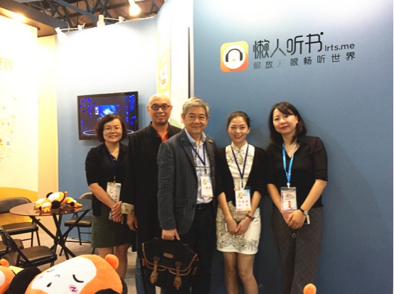中華廣播電視節(jié)目制作商業(yè)同業(yè)公會理事長汪威江蒞臨懶人聽書展臺,與工作人員探討兩岸廣播節(jié)目傳播合作,并希望能懶人聽書將臺灣現(xiàn)有的文化資源引入大陸進(jìn)行二次傳播,同時(shí)把聽書這種新型的“閱讀”方式推向臺灣地區(qū)。