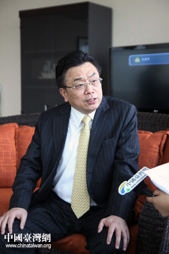 全國(guó)臺(tái)企聯(lián)新任會(huì)長(zhǎng)郭山輝接受中國(guó)臺(tái)灣網(wǎng)專訪。(中國(guó)臺(tái)灣網(wǎng) 肖艷 攝)