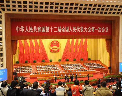 3月10日(星期日)上午9時(shí),十二屆全國(guó)人大一次會(huì)議在人民大會(huì)堂舉行第三次全體會(huì)議,最高人民法院院長(zhǎng)王勝俊作最高人民法院工作報(bào)告;最高人民檢察院檢察長(zhǎng)曹建明作最高人民檢察院工作報(bào)告;聽取國(guó)務(wù)委員兼國(guó)務(wù)院秘書長(zhǎng)馬凱關(guān)于國(guó)務(wù)院機(jī)構(gòu)改革和職能轉(zhuǎn)變方案的說明;表決第十二屆全國(guó)人民代表大會(huì)第一次會(huì)議選舉和決定任命的辦法草案。