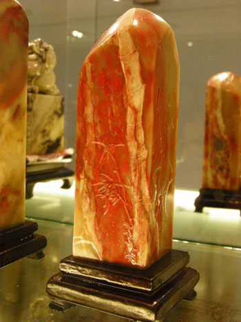 巴林石是一種葉臘石,因產(chǎn)于赤峰市巴林右旗而得名。石質(zhì)中含有多種化學(xué)成份,質(zhì)地潤(rùn)澤細(xì)膩,斑斕多彩,微呈半透明,硬度適中,脆軟相間,據(jù)專(zhuān)家測(cè)定,巴林石色澤、成份與我國(guó)傳統(tǒng)雕刻原料壽山石、青田石齊名,在韓國(guó)、日本、印尼的葉臘石之上,可與寶石、瑪瑙媲美,是雕刻、鑲嵌的最佳原料,是中國(guó)三大采石基地之一。以巴林石為基礎(chǔ)建立的巴林奇石館,是巴林石品質(zhì)和藝術(shù)精品的集中展示地,巴林奇石館的主要特點(diǎn)是:一,品種全、花色多。館內(nèi)陳列著雞血石、黃凍石、牛角凍、羊脂凍、水晶凍、瑪瑙凍、五彩凍、桃花凍、金黃料、紅花石、五彩石、畫(huà)石和高嶺石等巴林石優(yōu)質(zhì)礦石20多個(gè)品種,花色近百種。其中雞血石和畫(huà)石最引人注目。二是巴林石作品題材廣泛,造型優(yōu)美,形象生動(dòng)。雕件作品有反映草原特點(diǎn)的馬、牛、羊、駝,還有仿古器物,亭閣樓臺(tái),花鳥(niǎo)蟲(chóng)魚(yú),詩(shī)詞書(shū)畫(huà)等大量精品佳作。三是雕刻手法精湛,繼承傳統(tǒng),推陳出新。巴林石雕在繼承傳統(tǒng)雕刻藝術(shù)的基礎(chǔ)上,借鑒吸收了國(guó)畫(huà)的工筆白描手法以及玉雕的色彩選擇,骨雕的鏤空技世,發(fā)揮鑿、鏟、雕、剔、鉆、拉等工藝精心雕刻,使創(chuàng)造出的作品形體清晰,層次分明,玲瓏剔透,栩栩如生。