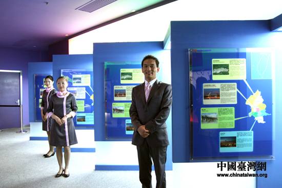 展館內(nèi)英俊靚麗的講解員們展現(xiàn)標(biāo)準(zhǔn)臺北“微笑”(中國臺灣網(wǎng) 李徽 攝)