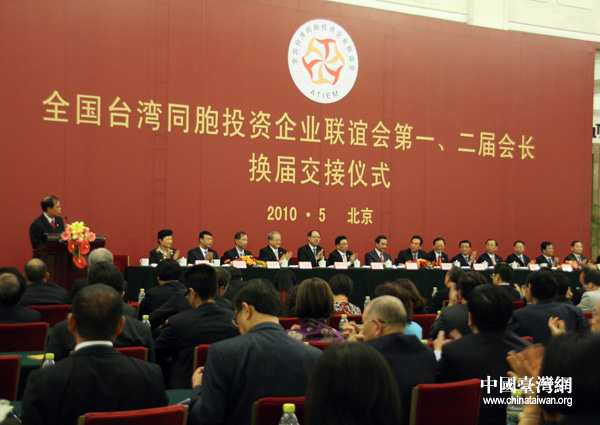 中國臺灣網(wǎng)5月14日北京消息 全國臺灣同胞投資企業(yè)聯(lián)誼會第一、二屆會長換屆交接儀式,14日下午在人民大會堂舉行。中國中央臺辦、國務(wù)院臺辦主任王毅、海協(xié)會會長陳云林等出席了儀式。(記者 鐘寶華)