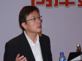 臺灣城邦集團營運平臺總經理、儂儂媒體集團執(zhí)行長、臺灣數(shù)字出版聯(lián)盟秘書長葉君超在兩岸數(shù)字內容及產業(yè)孵化論壇上作主題演講(中國臺灣網 高斯斯 攝)
