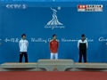 何沖帶領(lǐng)兩名小孩"放鞭炮"點燃亞運會主火炬