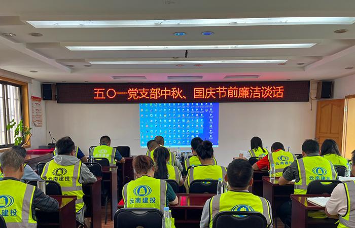 9月25日至9月27日,五〇五直管項目部黨支部分別到各在建項目開展中秋國慶廉潔提醒活動。活動通報“清風云南”公眾號發(fā)布的《省紀委監(jiān)委公開通報的四起違規(guī)吃喝典型問題》,通過4起違規(guī)吃喝典型問題,持續(xù)傳導風清氣正的良好節(jié)日氛圍。直管部紀檢委員還組織項目部管理人員觀看了清風云劇場《紅線》第二幕《糖衣炮彈》,提醒干部職工牢記中央八項規(guī)定精神,時刻緊繃廉潔之弦。直管部干部職工共31人參加活動。(責任編輯:李…