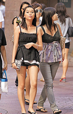 20日天氣炎熱,香港天文臺(tái)一度錄得攝氏33.1度高溫,上水區(qū)氣溫更曾高達(dá)攝氏34.7度,天文臺(tái)一度發(fā)出酷熱天氣警告。少女們也穿起吊帶背心及短褲。(圖片來源:文匯報(bào))