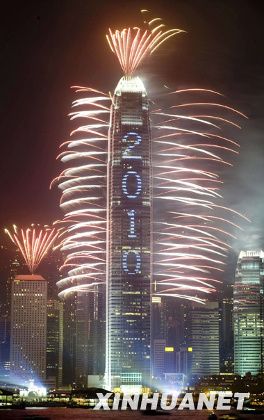 1月1日凌晨,香港維多利亞港舉行迎新年煙花燈光匯演,慶祝2010年元旦的到來。新華社記者呂小煒攝