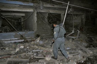 一名阿富汗警察對(duì)爆炸地點(diǎn)進(jìn)行檢查。