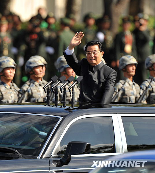 中共中央總書記、國家主席、中央軍委主席胡錦濤檢閱受閱部隊(duì)。新華社記者 陳建力 攝