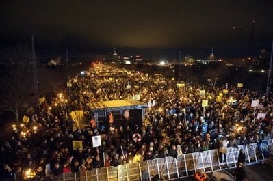 在舉行氣候峰會的哥本哈根,12日有10萬人上街示威。