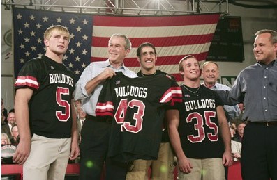 不過,當時的喬治·布什已經(jīng)在父親的公司里擁有了股份,并且是學校最闊的男生。為了表示自己對于棒球隊的熱愛和支持,布什穿上了菲利普斯學院棒球隊的彩色隊服,在邊線為本校球隊大聲搖旗吶喊。而且,為了表示藐視對方,布什不惜戴上假發(fā)和假乳房,借此貶低對方球隊。