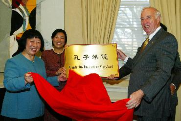 資料圖片:2004年11月17日,中美雙方在馬里蘭大學(xué)簽署共同建設(shè)美國(guó)第一所孔子學(xué)院----馬里蘭大學(xué)孔子學(xué)院的協(xié)議。
