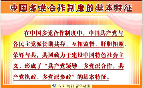 白皮書說,在中國多黨合作制度中,中國共產(chǎn)黨與各民主黨派長期共存、互相監(jiān)督、肝膽相照、榮辱與共,共同致力于建設(shè)中國特色社會主義,形成了“共產(chǎn)黨領(lǐng)導(dǎo)、多黨派合作,共產(chǎn)黨執(zhí)政、多黨派參政”的基本特征。中國多黨合作制度在中國的政治和社會生活中顯示出獨特的政治優(yōu)勢和強大的生命力,發(fā)揮了不可替代的重大作用。