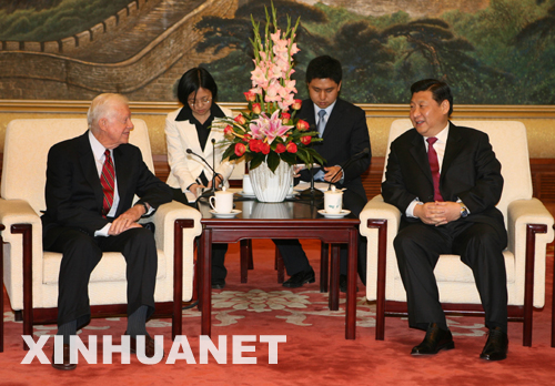 12月5日,中共中央政治局常委、書記處書記習近平在北京人民大會堂會見來訪的美國前總統(tǒng)卡特。新華社記者 馬占成 攝