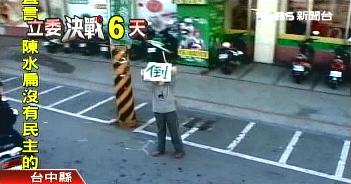 中國臺灣網1月6日消息 據(jù)臺灣TVBS電視臺報道,陳水扁今天在中臺灣掃街搶票,但仍舊碰上不喜歡他的民眾,有人高舉自制的倒扁標語,有人比倒扁手勢。陳水扁3公里的掃街路程也忙壞了隨扈和執(zhí)勤警察,甚至有隨扈累到不行,從車上跌下來,摔個四腳朝天。
