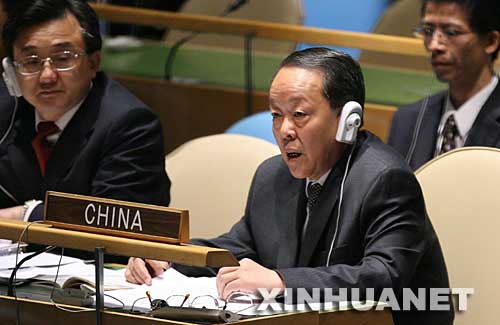 9月21日,中國(guó)常駐聯(lián)合國(guó)代表王光亞在紐約聯(lián)合國(guó)總部舉行的第62屆聯(lián)大第二次全會(huì)上發(fā)言。當(dāng)日,第62屆聯(lián)合國(guó)大會(huì)全體會(huì)議批準(zhǔn)聯(lián)大總務(wù)委員會(huì)的決定,拒絕將所謂“臺(tái)灣申請(qǐng)加入聯(lián)合國(guó)”提案列入聯(lián)大議程。 新華社記者侯俊攝