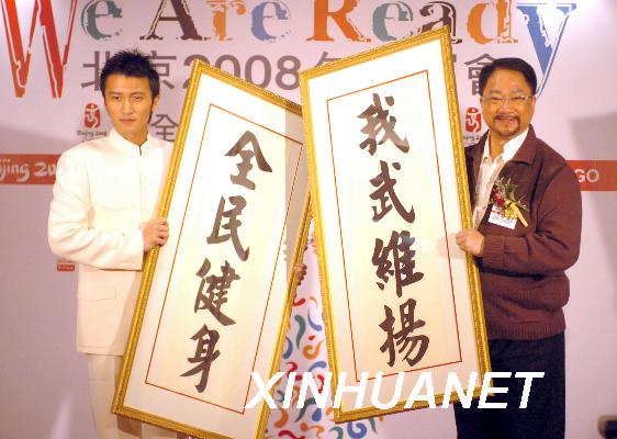 資料圖片:1月14日,中國香港藝人、“全民健身之星”謝霆鋒(左)與徐小明在新聞發(fā)布會(huì)上展示武術(shù)牌匾。當(dāng)日,香港舉行迎奧運(yùn)倒計(jì)時(shí)200天“全民健身迎奧運(yùn)”新聞發(fā)布會(huì),公布香港將在1月21日舉辦迎奧運(yùn)倒計(jì)時(shí)200天慶典活動(dòng)。新華社記者盧炳輝攝