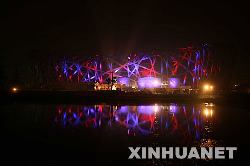 資料圖片:國家體育場(chǎng)(鳥巢)在五彩燈光的映照下璀璨亮麗。 新華社記者邢廣利攝