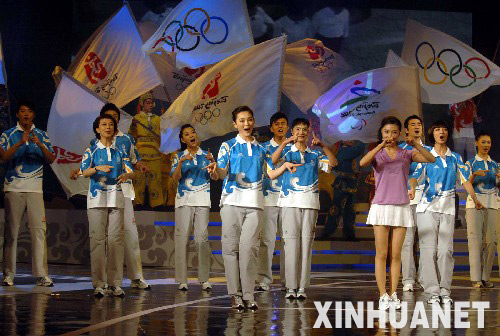 1月20日,志愿者合唱北京奧運(yùn)會(huì)倒計(jì)時(shí)一周年主題歌《We Are Ready》。