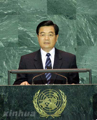 資料圖片:2005年9月15日,聯(lián)合國成立60周年首腦會(huì)議舉行第二次全體會(huì)議,國家主席胡錦濤出席會(huì)議,并發(fā)表了題為《努力建設(shè)持久和平、共同繁榮的和諧世界》的重要講話。新華社記者李學(xué)仁攝