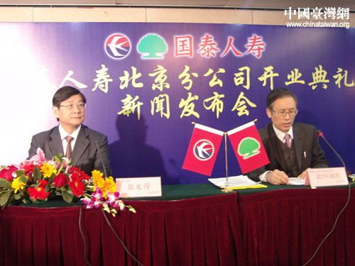 國泰人壽保險有限責任公司北京分公司在京開業(yè),國泰人壽總經(jīng)理張發(fā)得,國泰人壽北京分公司總經(jīng)理歐陽紹熙主持開業(yè)典禮新聞發(fā)布會。(攝影:邵磌)