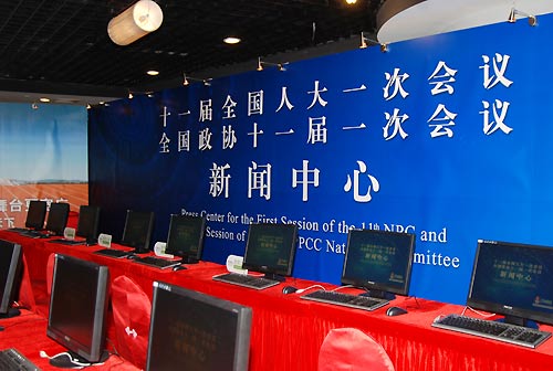 新華網(wǎng)北京2月26日電(記者魏武)十一屆全國(guó)人大一次會(huì)議和全國(guó)政協(xié)十一屆一次會(huì)議將分別于3月5日和3月3日在北京開幕。記者獲悉,設(shè)在北京西長(zhǎng)安街北側(cè)梅地亞中心(北京復(fù)興路乙11號(hào))的兩會(huì)新聞中心已于26日正式啟動(dòng),中心工作人員開始接待和安排中外記者采訪會(huì)議。