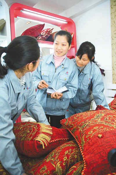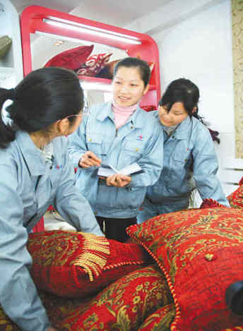 浙江代表團(tuán)的楊曉霞代表是寧波市外來(lái)務(wù)工明星之一。圖為進(jìn)京前,楊曉霞代表(中)來(lái)到姐妹們中間,傾聽(tīng)大家的心聲。孫曉青 丁繼敏攝影報(bào)道