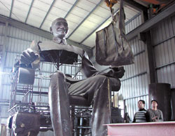 執(zhí)行銅像焊接的林昭慶描述,由于手上沒有原鑄造銅像圖片,加上送來的銅片碎落四處,就像玩拼圖般尋尋覓覓,前后花兩個月才摸出輪廓,印象最深,是看到當(dāng)初拆解撕裂的手法“異常凄慘”,認(rèn)為何其無辜。