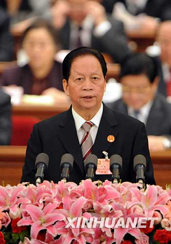 新華網(wǎng)北京3月10日電。吃拢保叭丈衔,最高人民法院院長(zhǎng)肖揚(yáng)和最高人民檢察院檢察長(zhǎng)賈春旺分別向十一屆全國(guó)人大一次會(huì)議作工作報(bào)告。