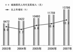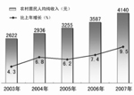 城鄉(xiāng)居民收入快速增長(zhǎng)。5年來(lái),我國(guó)農(nóng)村居民人均純收入由2003年的2622元增加到2007年的4140元,城鎮(zhèn)居民人均可支配收入由8472元增加到13786元。在城鎮(zhèn)居民各項(xiàng)收入中,經(jīng)營(yíng)、財(cái)產(chǎn)性收入比重有所上升,成為城鎮(zhèn)居民收入增長(zhǎng)的亮點(diǎn),表明我國(guó)居民增收的可持續(xù)性不斷增強(qiáng)。