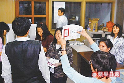 3月22日當(dāng)天投開票所計(jì)票情形。(圖:蘋果日?qǐng)?bào))