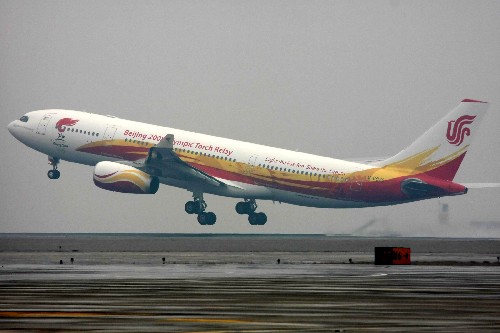 4月1日,“奧運圣火號”飛機(jī)起飛。當(dāng)日,北京奧運圣火搭乘專機(jī)離京,正式踏上以“點燃激情、傳遞夢想”為口號的全球傳遞之旅。新華社發(fā)(魏萌攝)