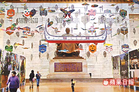 中國臺灣網(wǎng)4月2日消息 據(jù)臺灣媒體報道,昨天早上9時中正紀念堂(已更名為“臺灣民主紀念館”)的大門一開,被風(fēng)箏、蘭嶼拼板舟“困”了三個月的蔣介石銅像終于“重見天日”,但兩旁的展板依然高掛。