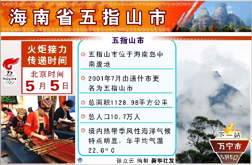 北京奧運會火炬5日晨開始在海南省五指山市傳遞