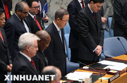 當(dāng)天上午,安理會就沖突后重建問題舉行高級別公開辯論會。主持辯論會的聯(lián)合國安理會輪值主席、英國外交大臣米利班德代表安理會全體成員,就四川地震向中國政府和人民表達(dá)誠摯的慰問。全體與會代表隨后起立默哀一分鐘,悼念汶川大地震遇難者。