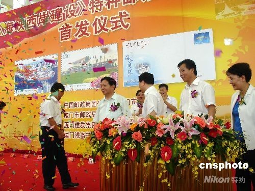 在福州,福建省人民政府和中國郵政集團十八日共同舉行了《海峽西岸建設(shè)》特種郵票、郵資封首發(fā)式。廈門國際游輪碼頭、泉州閩臺緣博物館、莆田古譙樓等也同時舉辦了首發(fā)活動。在閩臺胞、臺商對該套郵票表現(xiàn)出濃厚的興趣,踴躍購買。