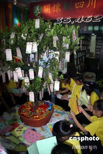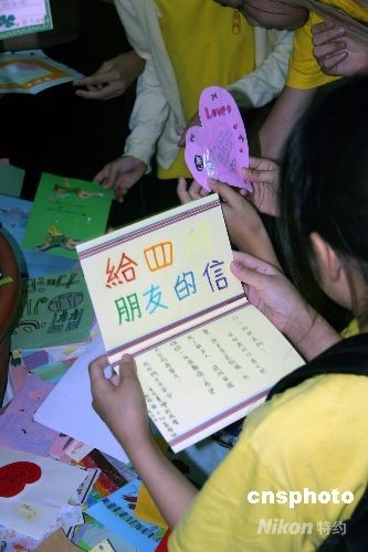 四川大地震后,臺(tái)灣社會(huì)愛心持續(xù)涌現(xiàn)。臺(tái)灣小朋友書寫和制作的三萬(wàn)五千四百六十二封信件和卡片將于近日寄往四川災(zāi)區(qū)。主辦方6月30日下午在臺(tái)北舉行“送關(guān)懷到四川”活動(dòng),將孩子們的信件匯集展出,吸引了眾多小朋友和家長(zhǎng)。 中新社發(fā) 徐長(zhǎng)安 攝