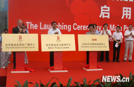 7月8日,北京奧運會主新聞中心(MPC)、國際廣播中心(IBC)、2008北京國際新聞中心正式啟用,圖為啟用儀式現(xiàn)場。新華網(wǎng) 楊理光 攝