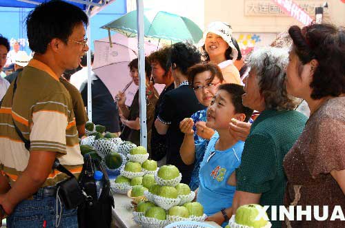 2007年7月,2007臺灣優(yōu)質農產品巡回展在遼寧大連開幕,來自臺灣的菠蘿、木瓜、芒果、茶葉等農產品參展。 新華社記者 任勇 攝