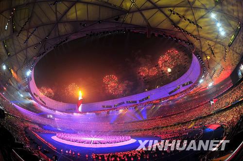 9月6日,北京2008年殘奧會開幕式在國家體育場“鳥巢”舉行。這是主火炬被點燃后的焰火表演。新華社記者廖宇杰攝