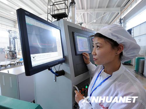 9月4日,企業(yè)員工在操作屏前觀察單晶硅生產(chǎn)情況。目前,寧夏2000噸單晶硅一期項(xiàng)目已完成投資1.3億元,并投入生產(chǎn),預(yù)計(jì)年產(chǎn)單晶硅600噸。該項(xiàng)目共分三期,總投資6.94億元。整個(gè)項(xiàng)目預(yù)計(jì)于2009年完成。企業(yè)全部投產(chǎn)后每年可實(shí)現(xiàn)銷售收入44億元、稅收1.5億元。單晶硅的原料生產(chǎn)與產(chǎn)品開發(fā)具有較高的科技含量和工業(yè)生產(chǎn)附加值。新華社記者 劉海峰 攝