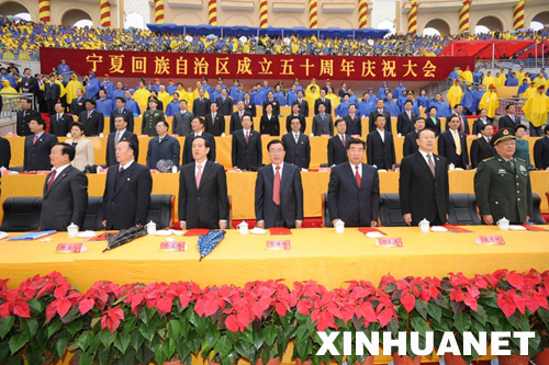 寧夏各族各界群眾隆重集會慶祝自治區(qū)成立50周年