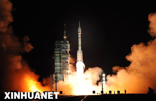 這是9月25日21時(shí)10分,長(zhǎng)征二號(hào)F型運(yùn)載火箭點(diǎn)火,神舟七號(hào)飛船在酒泉衛(wèi)星發(fā)射中心升空! 新華社發(fā)(資料照片)