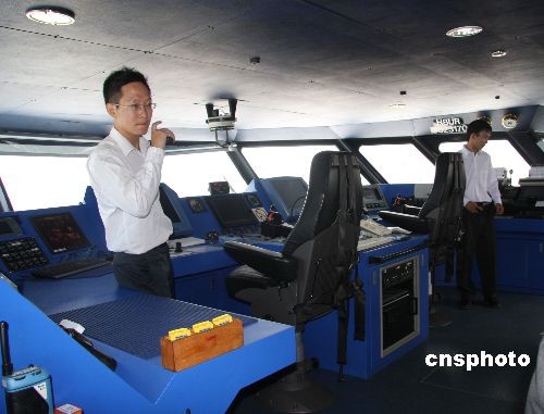 臺灣前;鶗貢L焦仁和任董事長的華達國際海運公司新購置的“海洋拉拉號”客貨船十五日舉行首航典禮。圖為“海洋拉拉”號的駕駛艙十五日向貴賓開放參觀。 中新社發(fā) 耿軍 攝