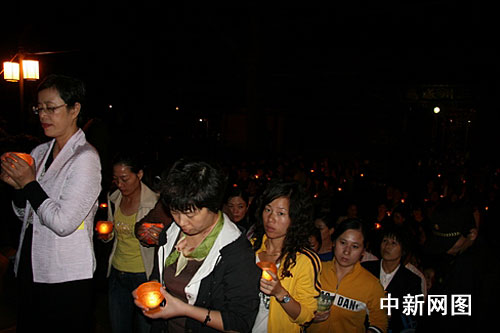 中新網(wǎng)舟山10月28日電(記者 江耘) 十月二十八日晚,著名的佛教圣地浙江普陀山普濟寺里,海峽兩岸的幾千名游客、信眾手捧明燈慢慢行走。第六屆中國普陀山觀音文化節(jié)的傳燈祈愿法會正在舉行。