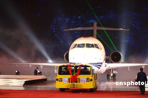 資料圖片:由中國航空工業(yè)第一集團公司(中國一航)自行研制生產的中國首架自主知識產權噴氣支線客機ARJ21-700飛機,在上海飛機制造廠舉行盛大的總裝下線儀式。 中新社發(fā) 文音 攝