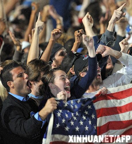 新華網(wǎng)快訊:據(jù)美國媒體報道,民主黨總統(tǒng)候選人奧巴馬在4日舉行的美國大選中獲得超過270張選舉人票,當(dāng)選總統(tǒng)已成定局。