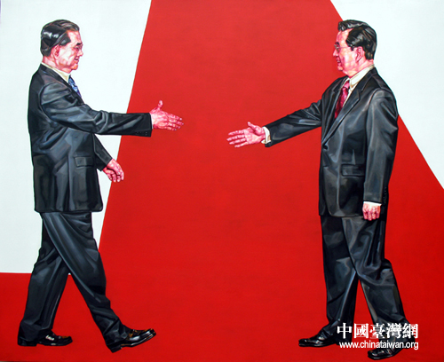 中國臺灣網(wǎng)11月10日北京消息 在海協(xié)會會長陳云林結(jié)束歷史性訪臺之際,藝術(shù)界也開始將目光集中在兩岸締造的歷史成就上。日前,素以刻畫政治人物而聞名的畫家馬堡中在北京展出了其2008年的一批最新作品。其中,一幅以中國共產(chǎn)黨中央委員會總書記胡錦濤與中國國民黨榮譽(yù)主席連戰(zhàn)在2005年“歷史性握手”為主題的油畫,成為各界關(guān)注焦點(diǎn)。