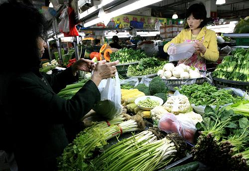 11月10日,顧客在上海市的一家菜場(chǎng)選購(gòu)蔬菜。來自上海最大的蔬菜集散地上海江橋蔬菜批發(fā)市場(chǎng)的信息顯示,自今年8月以來,上海蔬菜價(jià)格一直處于下跌趨勢(shì),10月底,上海市場(chǎng)蔬菜混合平均價(jià)格為1.48元/公斤,較去年同期1.77元/公斤已下降兩成。新華社記者 陳飛 攝
